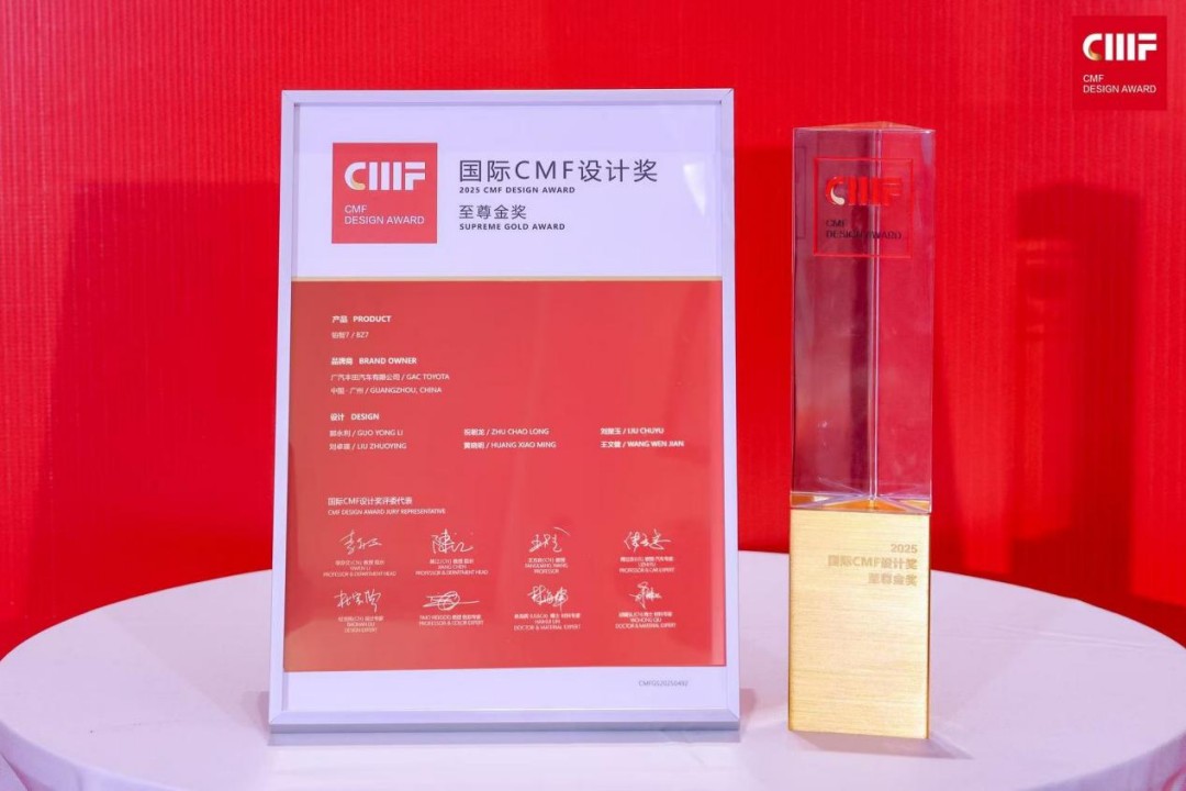 广汽丰田汽车有限公司-铂智7荣获2025国际CMF设计奖-至尊金奖(量产交通类)。